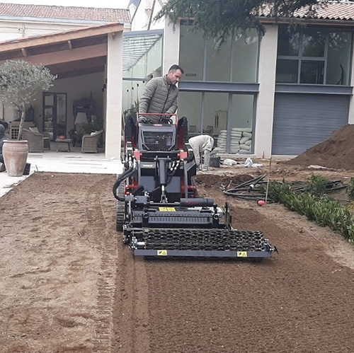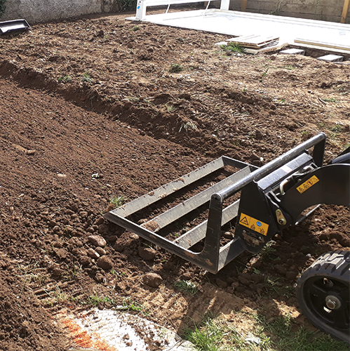 * Broyeur d'herbe, godet, grappin, tarrière, lame niveleuse, trancheuse de sol, râteau niveleur, enfouisseur de pierres, décrochage rapide.